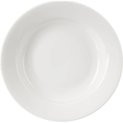 Kulatý hluboký talíř bílé barvy z opálového skla. Vhodný do MVT, myčky i chladničky. Max. 100 °C. Rozměry: pr. 23 cm, v. 3,5 cm.