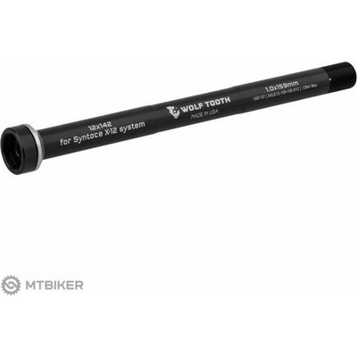 Pevná zadní osa pro rozměr 12 x 142mm. Celková délka osy 159 mm. Kónická dosedací plocha hlavy, využívá patentu a označení Syntace X-12. Stoupání závitu 1.0 , délka závitu 12...
