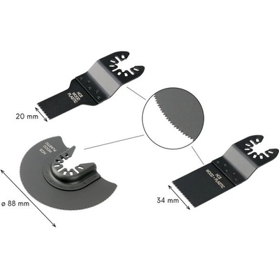 - sada nástrojů s univerzálním OIS upínáním pro oscilační brusky - 3 x plátek s vrstvou karbidu wolframu - vhodné pro řezání stavebních materiálů, obkladů, dlažby, čištění spár,...