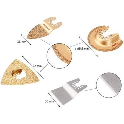 - sada nástrojů s univerzálním OIS upínáním pro oscilační brusky - 3 x plátek s vrstvou karbidu wolframu - vhodné pro řezání stavebních materiálů, obkladů, dlažby, čištění...