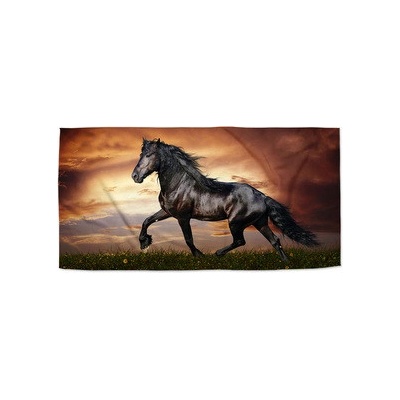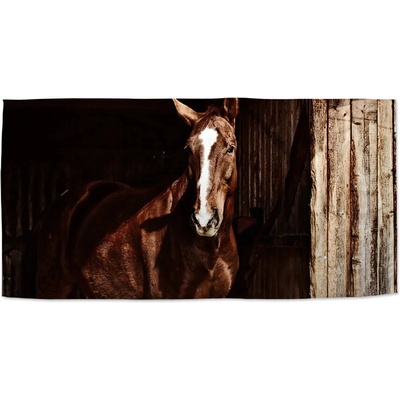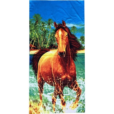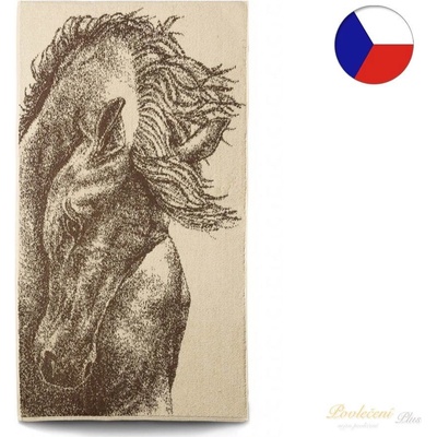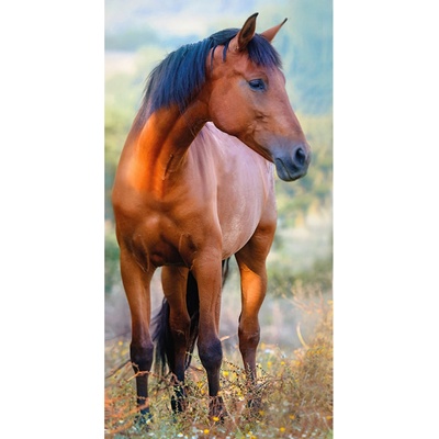 Dětský ručník s realistickým motivem hnědého koně na louce. Rozměr 30×50 cm, jemné bavlněné froté s vysokou savostí. Ideální na cesty, do školky i jako dárek pro milovníky...