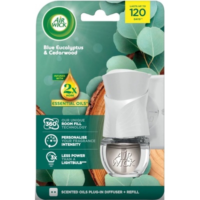 Air Wick Essential Oils Blue Eucalyptus & Cedarwood je elektrický osvěžovač vzduchu, který kombinuje chladivý eukalyptus s hřejivými tóny cedrového dřeva. Tato vůně je...