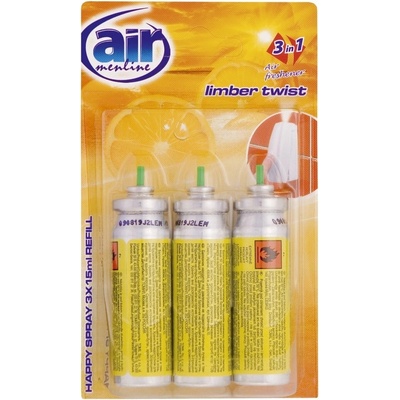 Rozprašovač Happy spray limber twist neutralizuje zápach a zanechává svěží vůni. Návod k použití: 1. Vložte náplň do plastového držáku a zatlačte dokud náplň kliknutím...