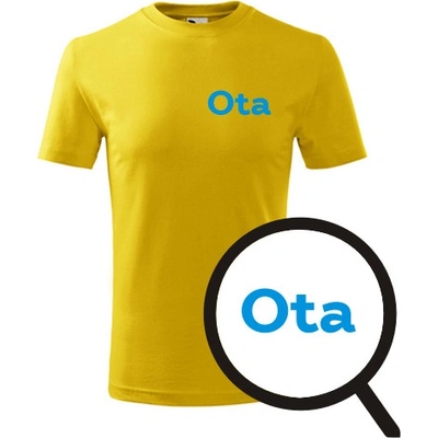 Žluté dětské tričko Ota. nabízené velikosti jsou 4roky,6let,8let,10let. Tričko je zařazeno v sekcích Trička se jménem na hrudi dětská - chlapecká, . Technologie tisku: Tisk na...