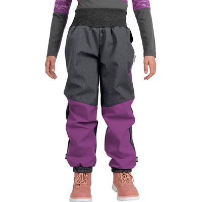 Unuo dětské softshellové oteplovačky s fleecem Plus Jednorožci ostružinová žíhaná antracitová