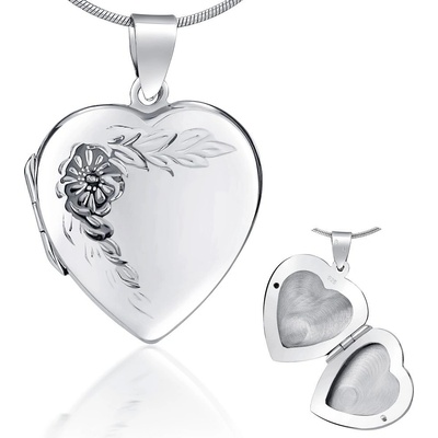 Stříbrný medailon otevírací s jemným rytím 22 mm ve tvaru srdce. Vhodné pro gravírování, věnujte personalizovaný šperk! Krásný a jedinečný dárek s možností osobního vzkazu, který o to víc potěší 😊 Materiál: Stříbro ryzost 925/1000. Povrchová úprava: rhodiovaný povrch –...