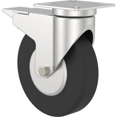 Kolečko medium duty průměr kolečka : 100 mmšířka kolečka 36 mmcelková výška 128 mmrozměr plotničky 104x80 mmrozteč děr na plotničce 80x60 mmstatická nosnost 160 kgs brzdou