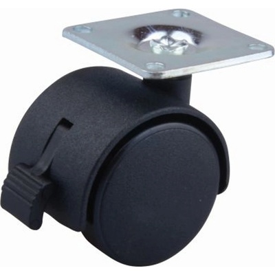 Speciální Komplet boční a spodní uchycení kolečka na lamino desky 18mm - otočné gumové 40mm s brzdou využití v nábytkářském do domácnosti ale i do průmyslu dílny...