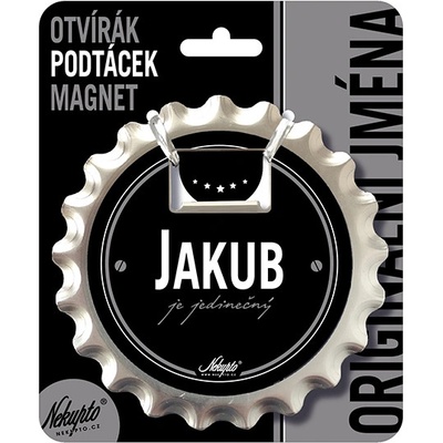 Otvírák na pivo se jménem JAKUB, to je unikátní a praktický dárek pro muže. Slouží současně i jako podtácek a magnet.