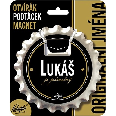 Otvírák na pivo se jménem LUKÁŠ, to je unikátní a praktický dárek pro muže. Slouží současně i jako podtácek a magnet.