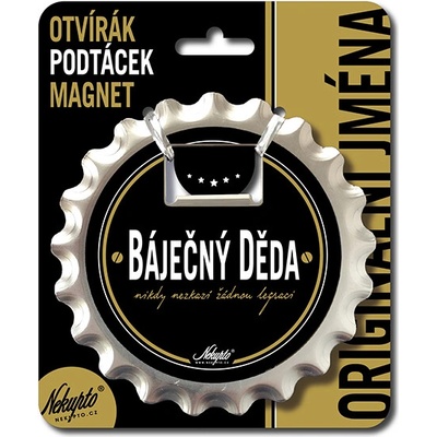 Otvírák na pivo s věnováním "Báječný děda", to je unikátní a praktický dárek pro dědečka. Slouží současně i jako podtácek a magnet.