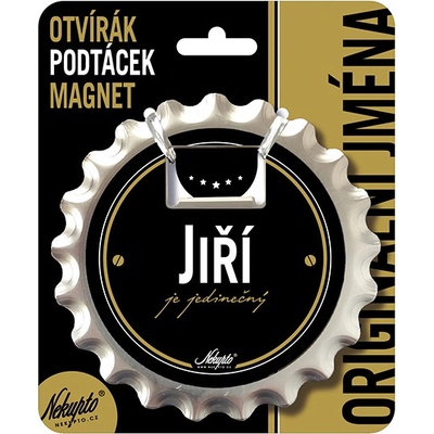 Otvírák na pivo se jménem JIŘÍ, to je unikátní a praktický dárek pro muže. Slouží současně i jako podtácek a magnet.