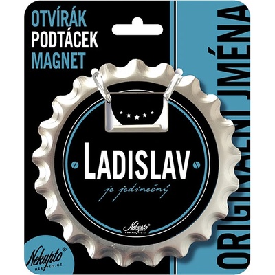 Otvírák na pivo se jménem LADISLAV, to je unikátní a praktický dárek pro muže. Slouží současně i jako podtácek a magnet.