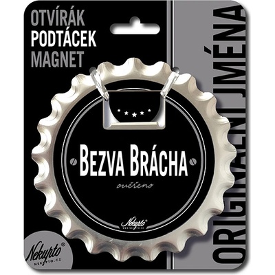 Otvírák na pivo s věnováním "Bezva brácha", to je unikátní a praktický dárek pro bratra. Slouží současně i jako podtácek a magnet.