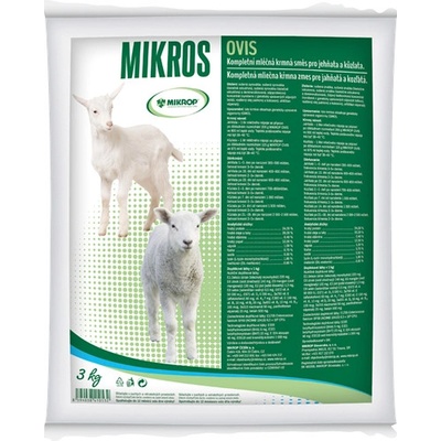 Mléčná náhražka pro zvířata, Mikros OVIS pro jehňata a kůzlata, 3 kg Složení: sušená syrovátka, sušená syrovátka částečné odcukřená, sušena syrovátka částečně odcukřená a...