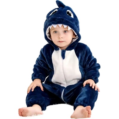Dětský overal Žralok Pohodlný,hřejivý a vtipný overal je tím pravým oblečením pro volný čas. Má kapuci a zapínání na zip. 100% polyester fleece