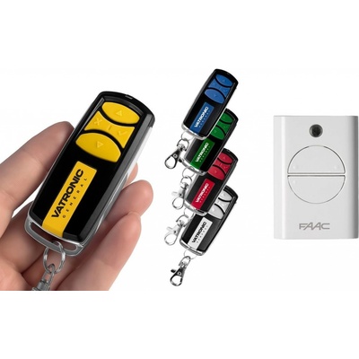 Náhrada za dálkový ovladač pro pohony vrat a bran kompatibilní s FAAC XT2, 2 tlačítka. Slouží pro dálkové ovládání pohonů garážových vrat a bran FAAC.Návod na kopírování ovladače:1. Stiskneme na starém ovladači současně tlačítka 1 (.) a 2 (..). Až se dioda rozbliká,...
