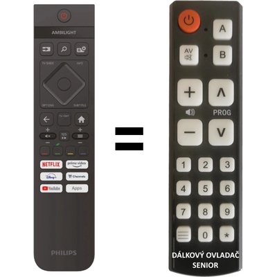 POUZE ZÁKLADNÍ FUNKCE. Náhradní dálkový ovladač philips NEPOTŘEBUJE KÓDY. Například pro 42OLED819/12, 48OLED819/12, 55OLED819/12, 65OLED819/12, 77OLED819/12,