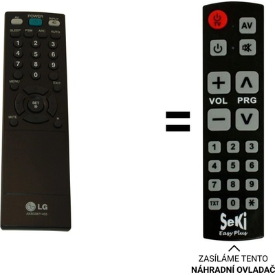 Náhradní dálkový ovladač LG podobného vzhledu jako originál. Bez programování, stačí vložit baterie.