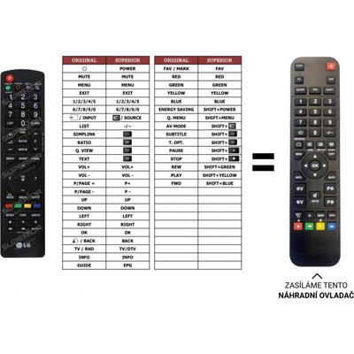 LG náhradní dálkový ovladač BEZ NUTNOSTI PROGRAMOVÁNÍ, funguje ihned po vložení baterii pro 50LB671