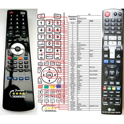Náhradní dálkový ovladač LG AKB72197602, AKB72373701 - 100procent náhrada 1:1 za originální dálkový ovladač. Dálkový ovladač je určen pro tyto modely LG: RH-698H, RHT497H,...