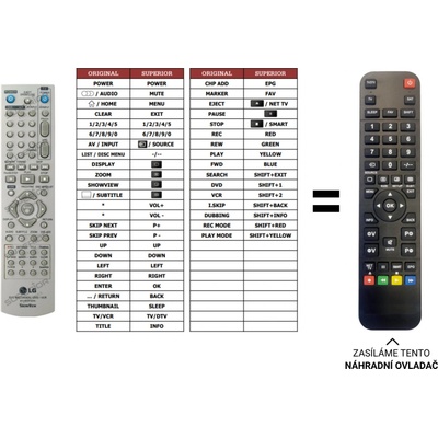 LG BEZ ZADÁVÁNÍ KÓDŮ. Náhradní dálkový ovladač pro DVD přehrávače LG. DN898 DVB812 DVX382H DVX395H DVX482H, DVX392H, DVX392H, DVX392, DVX482, DVX492H, DVX582H, DVX692H