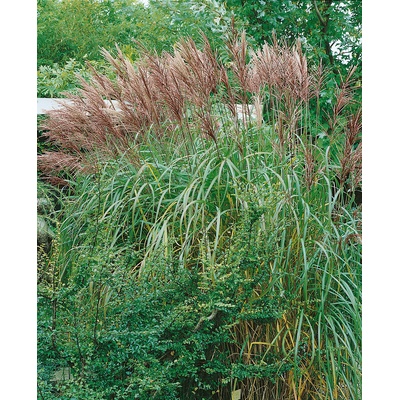 Miscanthus sinensis ‘Ferner Osten’ ozdobnice čínská Středně vysoký, spolehlivý ozdobný čistec (ozdobnice) s vínově červenými latami a výrazným podzimním vybarvením – klasika...
