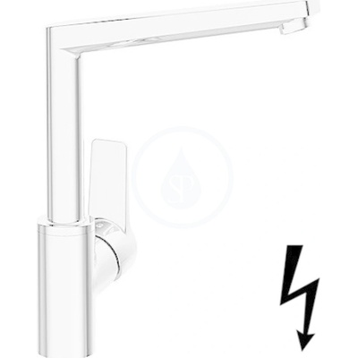Páková stojánková kuchyňská baterie otočné rameno BlueStart technologie - šetří energii a vodu, v pozici páky uprostřed protéká studená voda s flexibilními hadicemi G3/8...