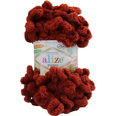 příze Puffy 597 pálená cihla. Silná žinylková příze s velkými oky pro pletení na rukou. Barva: pálená cihla. Složení: 100% mikropolyester. Návin: cca 9 m. Hmotnost: 100...