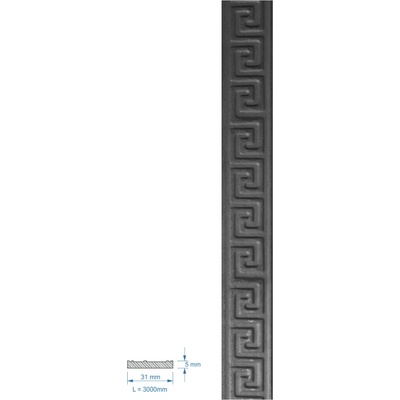 31.101 - zdobená pásovina pro kované zábradlí Vhodné použití je jako součást ozdobných kovaných plotů, bran, branek, schodišť, zábradlí, mříží atd. Technické informace: Šířka:...