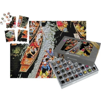 Skládačka SMART SORTED® | Puzzle 1000 dílků „Plovoucí trh, olejomalba jako stylistická předloha“ - Osobní dárek k narozeninám, svatbě, výročí, Vánocům, Dne matek nebo Dni otců....