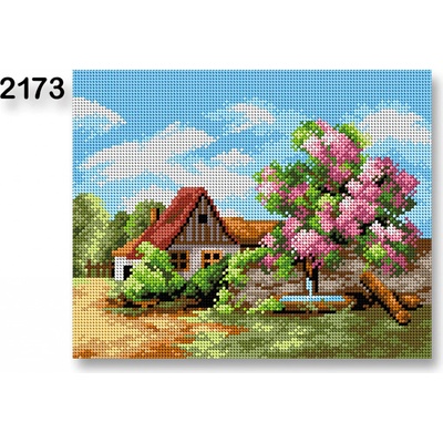 Vyšívací předloha s motivem domu s rozkvetlým stromem Předloha na vyšívání ze 100% bavlny je vhodná zejména na křížkový steh, nejlépe při použití přízí mouline (mulinka), které...