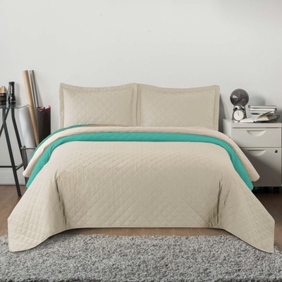 Oboustranný přehoz na postel INEZ 220x240 cm béžovo-mátová Oboustranný prošívaný přehoz na dvojlůžko z jedinečné kolekce INEZ zaručeně zútulní vaši ložnici. Přehoz je vyrobený...