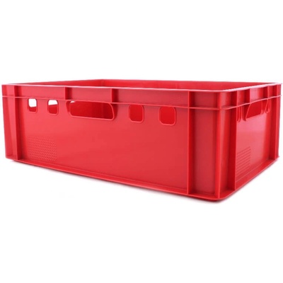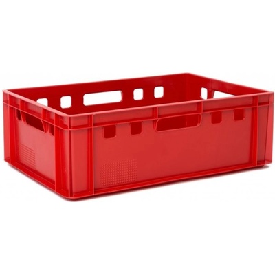 Nejčastěji využívaná plastová přepravka typu E2. Vhodná pro transport a uskladnění masa, masných výrobků, zeleniny a ovoce.Hladký povrch, perfektní čištění a dlouhá životnost. Vyrobena dle přísných norem. Standardní barva červená, možnost na objednání ale i jiné barvy....