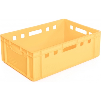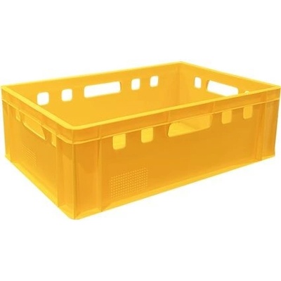 Plastová přepravka na maso a masné výrobky E2, ŽLUTÁ, vnější DxŠxV: 60x40x20 cm, nosnost 30 kg, materiál Polyetylen, dle normy DIN 55423, množstevní slevy
