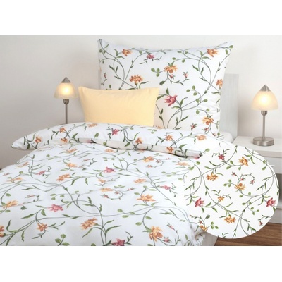 Flanelové povlečení - žluté popínavé květy na bílé Dvoudeka 160x200