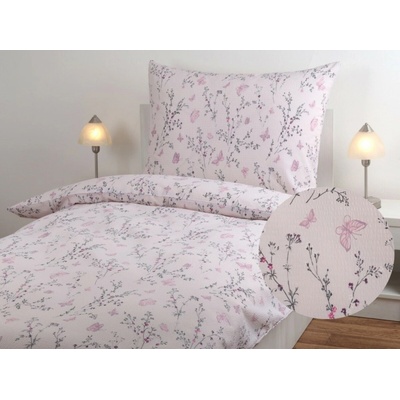 Krepové povlečení - větvička a motýlek na růžové Dvoudeka 160x200