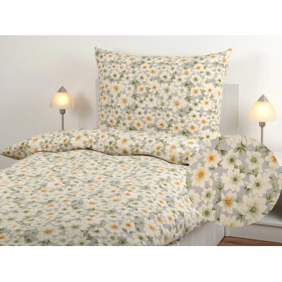 Flanelové povlečení - žluté popínavé květy na bílé Dvoudeka 160x200