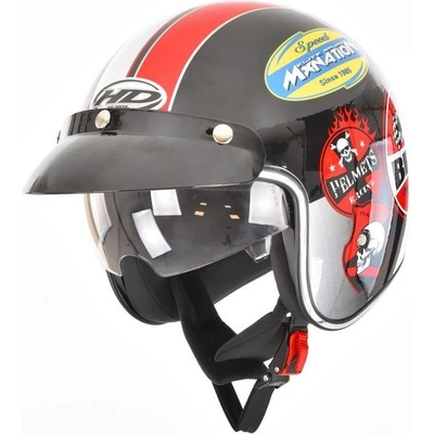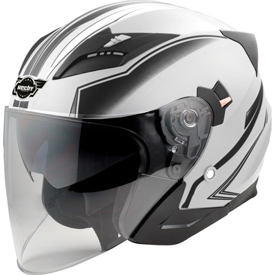 Stylová otevřená přilba pro skútry a choppery, výklopná sluneční clona, atraktivní grafický motiv. Helma na skútr W-TEC FS-710S je stylová otevřená přilba určená pro skútry a...