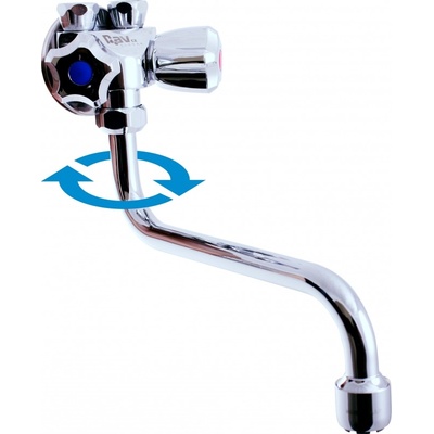 Vodovodní baterie dřezová nástěnná s flexibilním otočným ramínkem se sprchou. - tato baterie je vybavena keramickou kartuší o průměru 35 mm KA3502E - otočné ramínko se...