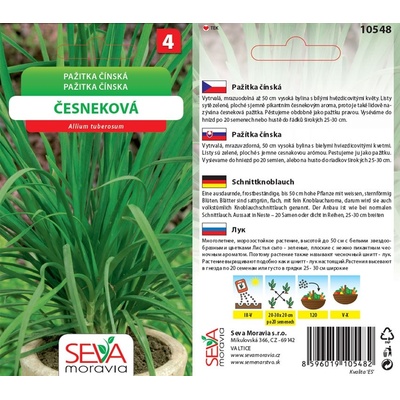 Vytrvalá bylina dorůstající výšky 50 cm. Kvete bílými hvězdicovitými květy. Ploché listy mají česnekové aroma. Seje se do sponu 20 - 30 x 20 cm po dvaceti semenech. Jak pěstovat pažitku česnekovou: Pažitka čínská venku nejlépe prospívá na světlém, slunném místě. V...