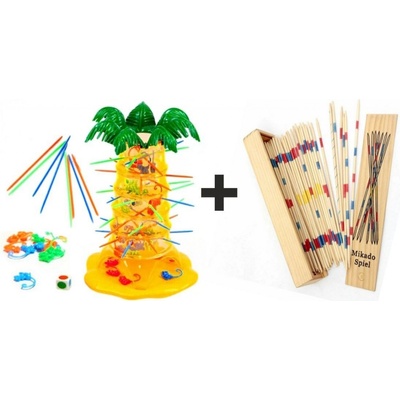 Jedinečná zručnostní hra Padající opičky lehce připomíná klasickou hru Mikádo. Úkolem je odebírat tyčky tak aby opičky nepropadávaly. Nejprve si postavíte strom nastrkáte tyčky libovoně do předem připravených otvorů a spustíte opičky do útrob stromu. Ty se zachytí...