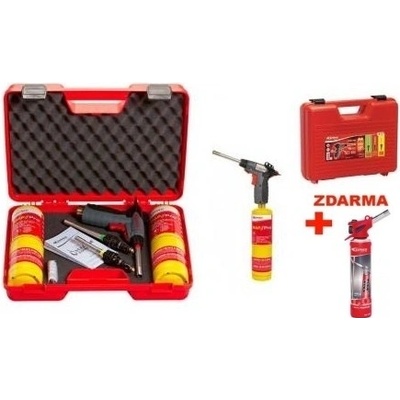 k pájení plamenem, jednoduchý hořák, piezo zapalování, 4× náplň butan 190 ml, doba hoření 1 h (1 700 °C), teplota plamene 1 750 °C