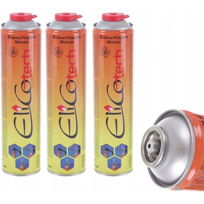 3x Univerzální plynová kartuše ELICOTECH 336g - Závit 7/16′′ Technické údaje: - plynová kartuše Elicotech - Typ ventilu: šroubovací 7/16′′ - Typ plynu: propan 30% – butan...