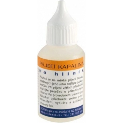 Kapalina pájecí ELCHEMCO na hliník 30ml Pájecí kapalina pro měkké pájení hliníku a některých jeho slitin nejlépe pájkou Sn90Zn. Je chemicky agresivní a proto vyžaduje po...