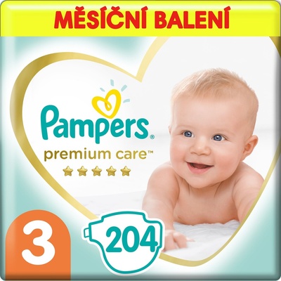 Pampers Premium Care Size 3, 60 ks, Jednorázové pleny pro děti, Miminko, které je v suchu, je šťastné miminko. Komfort po celý den i noc zajistí vašemu děťátku jednorázové pleny Pampers Premium Care Size 3. Udrží jeho zadeček v suchu a vy si tak můžete naplno a bez...