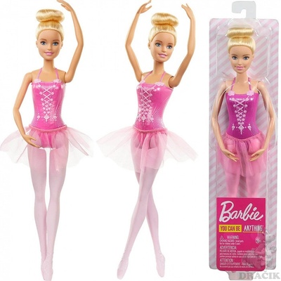 S Barbie balerínami je fantazie středem pozornosti! Každá krásná panenka má klasický vzhled, který zahrnuje zdobený živůtek, baletní střevíčky „en pointe“ a průhlednou...