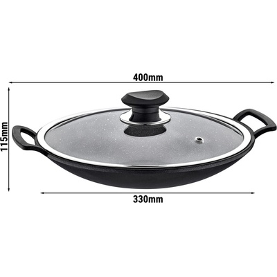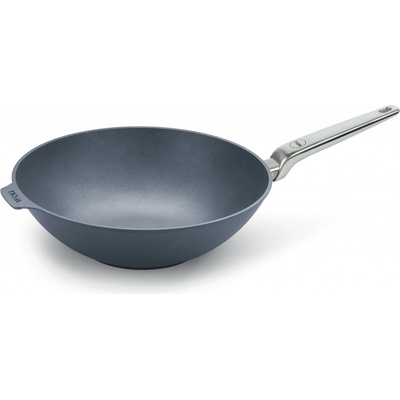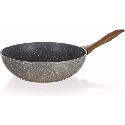 Hliníková litá kovaná WOK pánev má speciální nepřilnavý povrch s kamenným vzhledem. Bez velkého množství tuku na ní připravíte skvělé pokrmy, které se nepřichytí a nepřipálí....