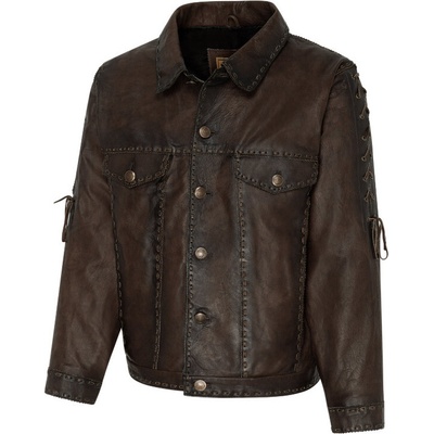 Kvalitní kožená westernová bunda z měkké hovězí kůže. Dokonale propracované detaily v podobě prošívání a šněrování na rukávech. Se zapínáním na patentky a dvěma praktickými...