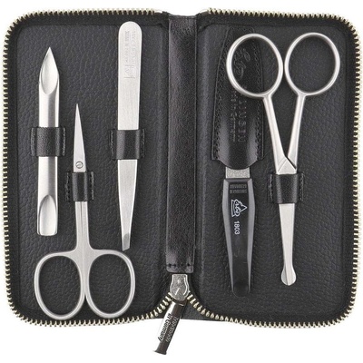 Černá 5dílná sada na manikúru z kvalitní nerezové oceli Solingen v pouzdře z přírodní hovězí kůže. Praktická velikost sady se hodí i na cesty a nemusíte se obávat, že některý...